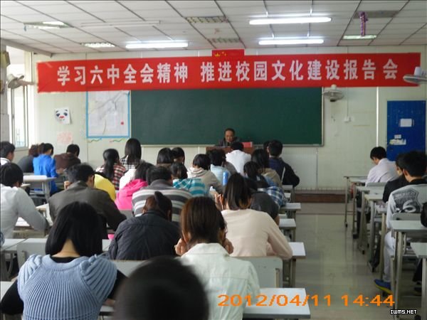 4月11日下午,学院关心下一代工作委员会、学院团委联合在0107教室举办“学习六中全会精神 推进校园文化建设”专题报告会,报告会由关工委主任王崇泽主讲,团委副书记朱玫林主持。学院部分团学干部和中国特色社会主义理论学习研究会会员聆听了这场精彩的报告。