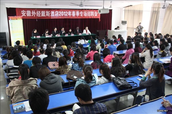 招聘宣讲会由招生就业处王永平副处长主持,学院副院长胡戴新、行知管理学院党总支副书记唐学华、旅游管理系党总支副书记徐明和安徽外经戴斯酒店负责人以及近200名2010级“2+1” 相关专业的学生参加了宣讲会。