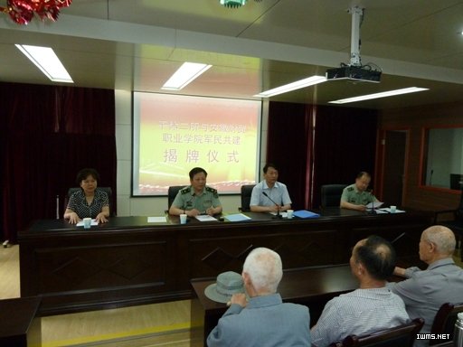 6月15日下午,省军区合肥第二干休所多功能厅洋溢着军民鱼水一家亲的浓厚情谊,学院与省军区合肥第二干休所隆重举行军民共建签约暨爱国主义教育基地揭牌仪式。干休二所所长闫卫东、政委黄国佳、学院党委书记孙永、党委副书记胡善珍等出席了签约仪式,学生处、团委、各院系党总支负责人及学生干部代表参加。签约仪式由闫卫东所长主持。