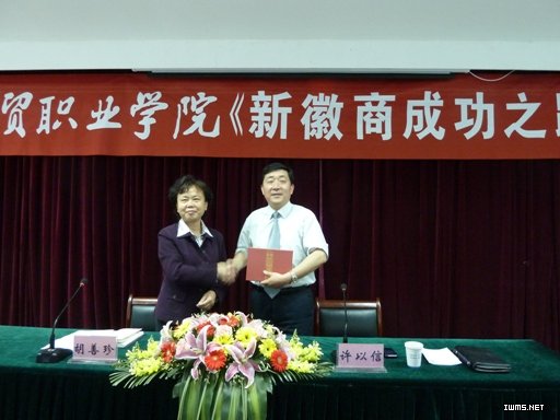 讲座结束后,在现场同学们的见证下,许以信总监向我院赠送一批《徽商》杂志,供同学们在图书信息中心借阅;胡善珍副书记代表学院向许以信总监颁发了“安徽财贸职业学院客座教授”的聘书。