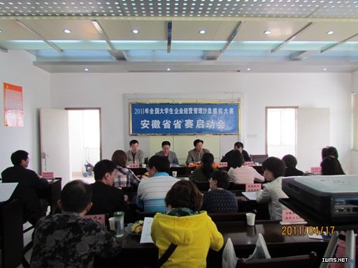 4月17日,由教育部高职高专工商管理类教学指导委员会主办 “2011年全国大学生企业经营管理沙盘模拟大赛”安徽省赛区启动会在我院行政楼五楼会议室隆重召开。来自全省各地的19所院校教师代表出席启动会。行知管理学院副院长方春龙主持会议。