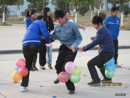 12月8日下午,读书协会在学院篮球场举行了一场别开生面的趣味运动会。趣味运动会以“追忆童年”为主题,“团结协作”为宗旨,“增进友谊”为目的,开展了“吸管传情”、“我爱拍电影”、“响亮队呼”、“五毛一块”、“疯狂踩气球”等有趣的游戏项目,让会员同学们在读书、工作之余感受到游戏、运动带来的快乐。