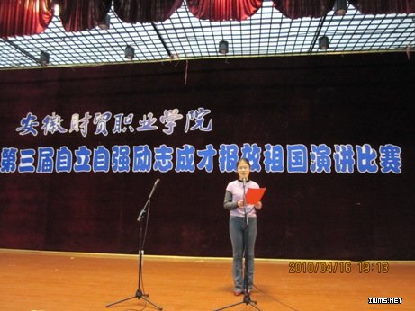4月16日晚,由学生处、团委联合举办的学院第三届“自立自强、励志成才、报效祖国”大学生演讲比赛在大学生艺术活动中心隆重举行。各系部及相关处室的负责同志应邀观看了比赛,院系学生干部及09级享受国家资助的部分同学代表聆听了演讲。