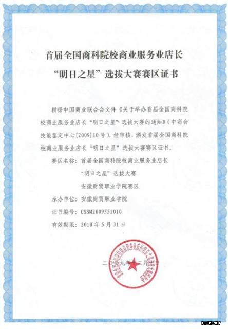 由中国商业联合会举办的“首届商科院校商业服务业店长‘明日之星’选拔大赛于10月12日正式拉开帷幕,我院电子商务系将代表学院全程参与该项赛事。本次大赛在推动连锁经营与管理专业教学改革,展示各院校专业教学成果,提供专业教师交流,促进学校实践环节的教学将会起到积极的效果,同时,也为提升学生的就业能力,搭建学生施展才能的舞台等方面发挥积极作用。日前,大赛组委会正式给学院颁发了安徽财贸职业学院赛区证书。为配合此次大赛,电子商务系精心组织,结合比赛规程制定赛前辅导计划,动员连锁经营专业的学生积极参赛。经过初选最后将确定二组参赛队伍代表学院参加技能团体比赛,争取获得优秀成绩。