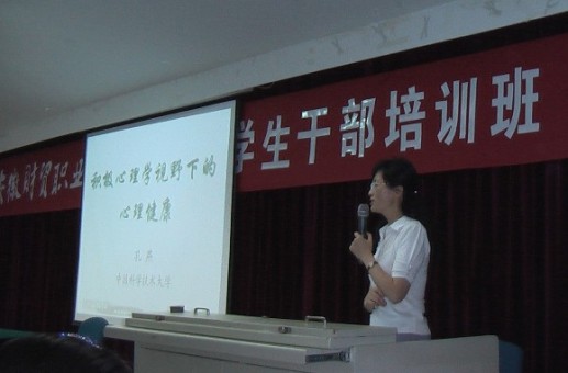 此次培训特邀我国知名心理教育专家中国科学技术大学心理教育中心主任孔燕教授,为参加培训的全体学生干部作了一场题为《积极心理学视野下的心理健康》的学术讲座。孔燕教授早年留学荷兰,取得心理学博士,现担任全国大学生心理咨询与教育专业委员会常务委员、欧洲天才研究学会理事、安徽省学生心理研究会会长等多项学术兼职。报告中,她用幽默风趣的语言,深入浅出的讲解,将上世纪末美国著名心理学家赛里格曼的《积极心理学》理论演绎给大家,列举了中科大少年班优秀毕业生成才等大量生动翔实的事例,分析了优秀学生应具备的六项特征,还与学生干部们进行了互动交流,并回答了部分同学提出的问题。