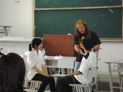 5月18日下午,美籍教师Erik Storch先生应邀来我院指导国际贸易系07级商务英语专业学生实训。