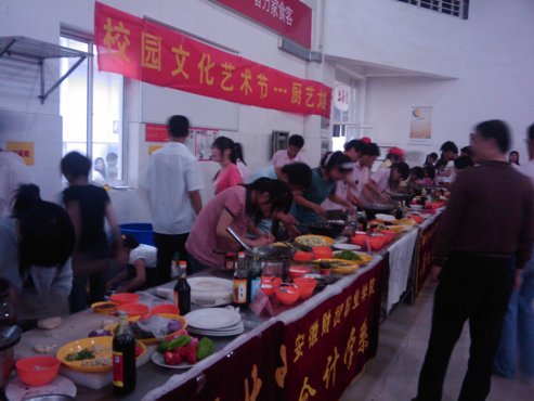 各参赛队队员在规定时间内完成六个规定菜和二个自选菜,每道菜分别由评委和随机抽取的学生轮流打分,最后取平均值。经过一个多小时的激烈角逐,计算机系代表队荣获团体第一名,国际贸易系和会计学系代表队分获二、三名,最佳人气奖由中专部代表队获得。工商管理系和电子商务系代表队分获最具风味奖和最具特色创新奖。