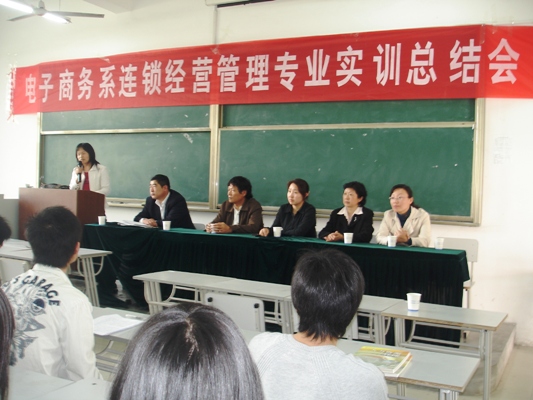 4月22日下午,电子商务系在学院9101教室召开连锁经营管理专业实训总结会。该专业实训基地易初莲花超市、永达超市的相关负责人应邀出席大会。