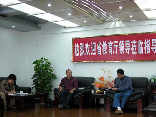 胡戴新院长助理向检查组汇报了开学以来学院的工作情况和省级示范院校的建设情况,检查组着重对我院的招生就业、师资队伍建设、实训室建设、校外实践基地建设等情况进行了了解。听取了汇报后,李方泽副处长对学院扎实的工作作风给予了肯定,并就省级高职示范院校建设谈了三点建议:一是要树立稳定压倒一切的思想,安全工作要毫不放松;二是在高职人才培养水平评估和省级示范院校建设上,要科学定位,发挥自己的优势,创新特色;三是要处理好理论教学与实验实训建设的关系,学生不能只知理论,不会动手。