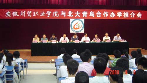[dvnews_page] 9月8日晚,学院与北大青鸟项目合作推介会在我院举行,北大青鸟总部张大伟经理、北大青鸟安徽高职授权服务中心凌滨总经理、学院胡戴新院长助理和相关系处领导出席大会,07级“北大青鸟”特色班及计算机系相关专业08级300多位新生参加会议。大会由计算机系副主任张成叔主持。