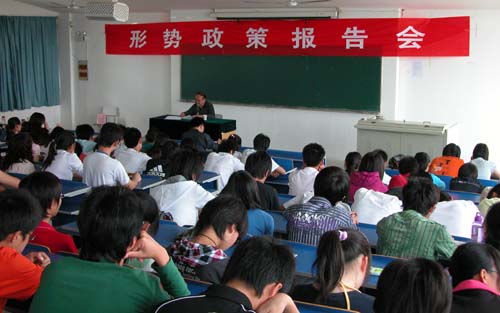 [dvnews_page] 5月14日下午,以“反藏独,迎奥运,把自己的事情办好就是最大的爱国”为主题的形势政策报告会在我院5202教室举行。此次报告会由院关工委主任王祟泽同志主讲,200多名学生听取了报告。当前国际政治形势错综复杂,在北京奥运会即将召开之际,召开这个报告会使同学们对目前的政治形势有了深刻的认识,对在当前形势下该做什么事、不该做什么事有了深入的思考。同学们深受鼓舞,获益匪浅,纷纷表示要发愤学习,把自己的事情办好,立志报效祖国。