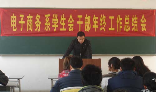 [dvnews_page] 1月8日中午,电子商务系在1203教室召开系学生会干部年终工作总结与考核会议,22名学生会干部进行了2007年度工作述职。各班班长、团支部书记参加会议,并对系学生会干部进行民主考核。系党总支书记邓庆安作了总结发言,对一年来系学生会工作进行综合评价并对2008年工作提出了总体要求。