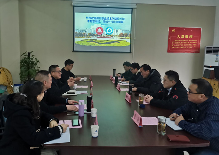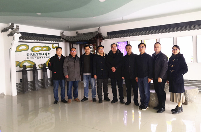 兄弟院校情谊深,学习交流共促进。12月8日上午,滁州职业技术学院商学院党总支书记、院长李有志,副院长程震、电子商务系主任杨剑、电商专业教授宋君远、副教授张泉一行5人赴经济贸易学院考察,经济贸易学院院长黄诗义、党总支书记陶云龙、副院长江友农与曹宝亚、电子商务专业教师许明星与陈小芳参与交流。