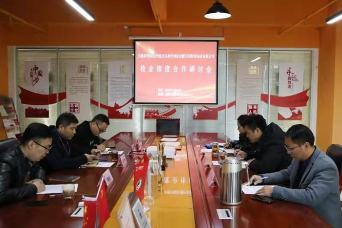 11月24日,公共教学部赴安徽轩昂教育科技有限公司开展校企合作洽谈活动,公共教学部主任王学峰、党总支副书记何步新、副主任陈伟,安徽轩昂教育科技有限公司董事长王磊、总经理刘灯祥、培训总监林峰参加会议。