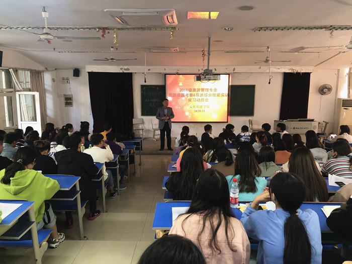 近日,文化创意学院旅游管理专业开展了为期两周的资源考察及导游综合技能实训活动,2019级旅游管理专业全体同学参与了此次实训活动。实训活动持续两周,第一周为皖南资源考察活动,第二周为导游综合技能实训。出发前,文化创意学院组织召开实习动员会,文化创意学院院长郭湘如勉励同学们珍惜机会、认真实践,服从管理,尤其要遵守学校和驻在地安全、防疫管理的要求。旅游管理教研室主任钱晓慧介绍了具体的实习安排及实习作业要求。