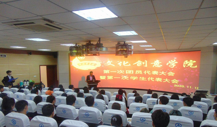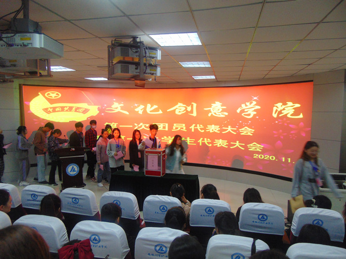 2020年11月18日,文化创意学院第一次团员代表大会暨第一次学生代表大会在3D实训室隆重召开。文化创意学院党总支书记张克、办公室主任王帮红、团委学生事务发展中心主任孙俊峰出席会议,部分教师代表及院部88名优秀团员代表参加会议。