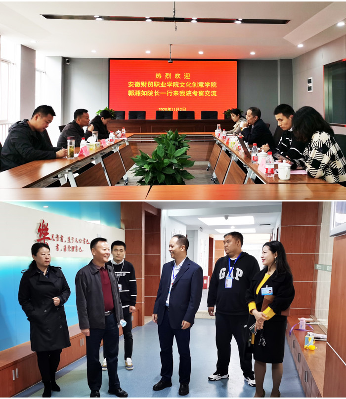 近日,文化创意学院院长郭湘如教授、副院长高静以及专业教研室主任等一行前往国家“双高校”长沙商贸旅游职业技术学院重点建设专业群所在的文创学院、湘旅学院进行考察交流。郭湘如一行受到了该校文化创意学院党总支书记、院长许名勇教授、党总支副书记谢路奇、副院长黎谦,湘旅学院副院长陈莉、副院长李好等热情接待。