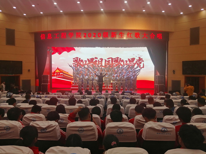 11月3日晚,信息工程学院在报告厅隆重举行2020级“歌唱祖国歌唱党”新生红歌大合唱比赛。信息工程学院院长张成叔、党总支书记邓庆安、副院长姚成、办公室主任刘燕、第一党支部书记徐新星、计算机信息管理教研室主任陆慧、马克思主义学院办公室主任郭清受邀担任比赛评委,党总支副书记张伟伟和2020级各班级辅导员观看了比赛。
