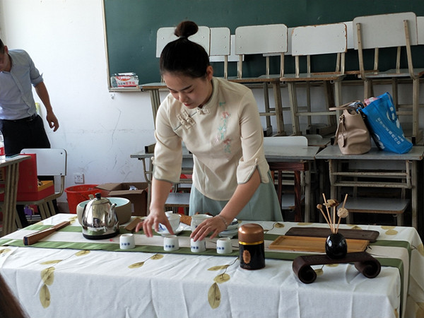 整个教学过程中,罗小妹运用互动方式推进教学,不时通过提问的方式检查学生知识的接受情况,并请学生模拟茶艺人员的礼仪行为,及时指点学生行为中的欠缺,对回答问题正确的学生以及模拟优秀同学给予奖品激励。最后,来自企业的茶艺师在悠扬典雅的古曲伴奏下,为学生们进行了精彩的茶艺表演。