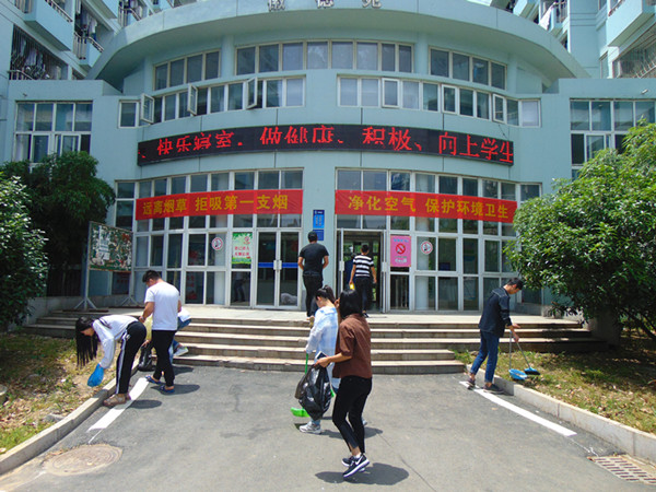 活动前,张玥晨老师将入党积极分子们分为两组,清理校园垃圾和烟头。他们有的拿扫帚,有的拿簸箕,有的提垃圾袋,他们不怕脏、不怕累,彻底清扫了公寓外围及周边的卫生死角,为初夏的校园环境增添了亮丽的风采。