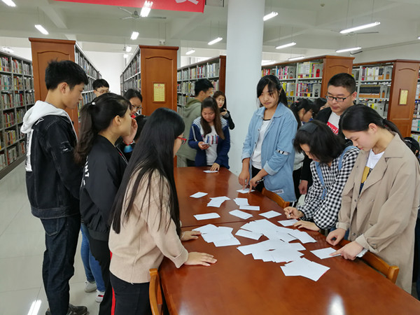4月20日,第十三届读书月系列活动之“书山寻宝”大赛在图书信息中心综合书库举行。