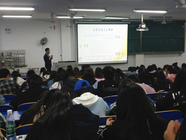 大学生正处于人生发展的青春期,自我意识不断增强,对爱情充满着向往,但是在大学的特定文化背景下,大学生在爱情方面存在各种各样的心理困惑。此次讲座,通过合理的教育引导大学生树立正确的爱情观,有利于青年大学生健康成长和发展。(供稿:刘凯 审稿:张少兵)