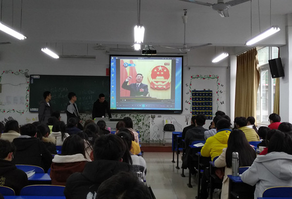 3月份,马克思主义学院举办两会主题课堂,传递2018年两会声音,引导大学生自觉关注时事政治,关心国家大事。
