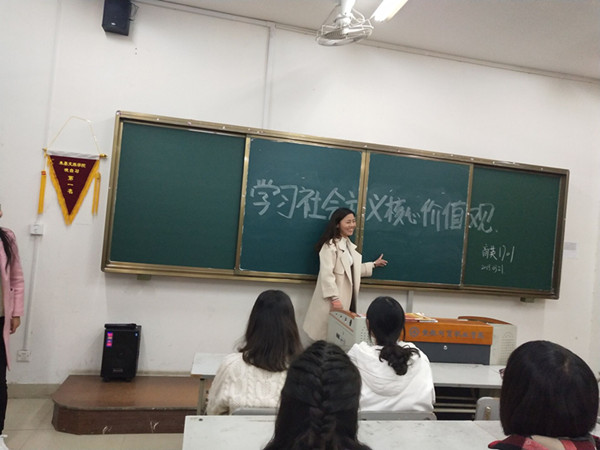 宣传践行社会主义核心价值观,是时代的号召,是时代的最强音。朱熹文旅学院团总支通过开展社会主义核心价值观宣传及实践活动,让全体学生深入领会了社会主义核心价值观要求及精神内涵。广大共青团员纷纷表示,作为共产主义接班人,将高举党的十九大旗帜,自觉践行社会主义核心价值观,提升理论修养,学好专业知识,不断提升技能水平与综合素养能力,为祖国社会主义现代化建设奉献自己的力量。(供稿:汪双 审稿:宋凌云)