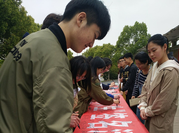 签名活动受到广大师生的热烈响应,大家纷纷驻足在横幅上郑重签上自己的名字。据悉,签名横幅将在图书信息中心大厅巡展一个月,以此提醒同学们用阅读提升自己的素质,做新时代的逐梦人。(供稿:藕海云 审稿:张克)
