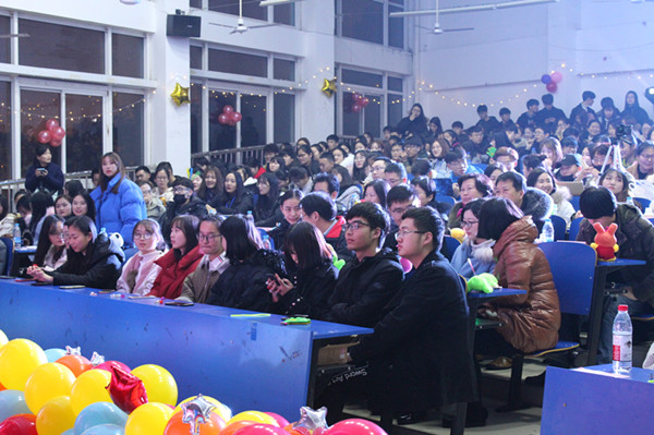 12月28日晚,5103教室里人声鼎沸、热闹非凡。大位会计学院“拥抱新时代,奋进新征程”元旦晚会浓情上演,中银金融商务有限公司合肥分公司人力资源部经理李南山、继续教育中心副主任龚毅、学生处老师,大位会计学院副院长姚云霞、副院长李红梅、副书记雷青梅、办公室主任以及辅导员们欢聚一堂,携手共跨新年,迎接崭新的2018。