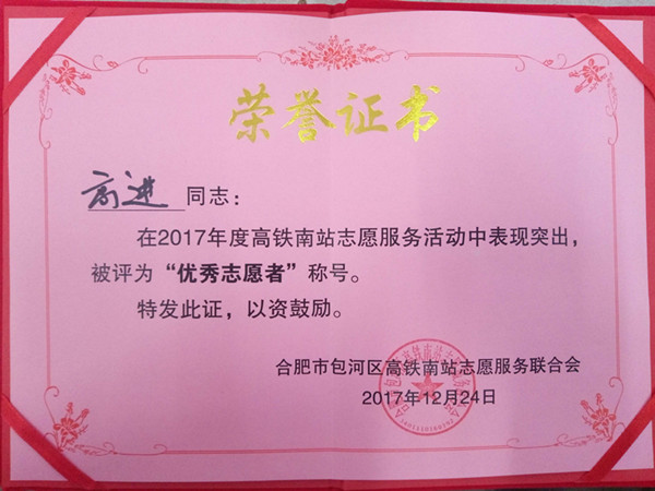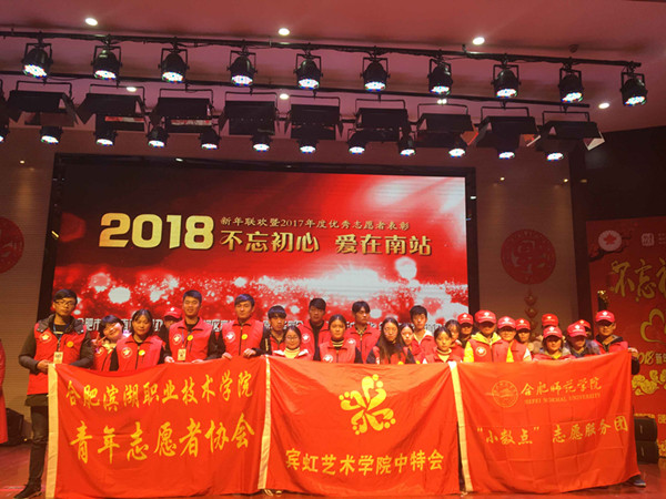 12月底,合肥高铁南站志愿服务联合会举办了以“不忘初心 爱在南站”为主题的2017年优秀志愿者表彰暨2018年元旦联欢会。宾虹艺术学院志愿小分队参加了此次大会。