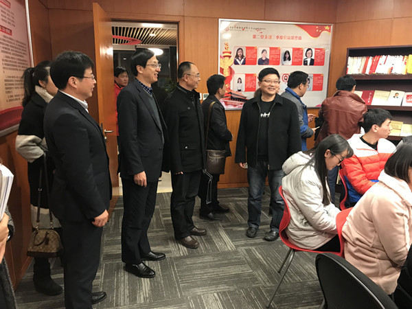 公司总支委员会书记兼中银金融商务有限公司副总经理、合肥分公司总经理黄武,总支委员、分公司团委书记唐泉等领导对我校行政第二党支部人员表示欢迎,在该公司总支委员会第一行政支部委员王杨的陪同下,陶云龙一行参观了党员活动室,并与正在学习党的十九大报告的年轻党员们进行了亲切交谈和热情交流;之后在公司大楼B区会议室,双方就党组织标准化建设内容进行了深入地座谈。