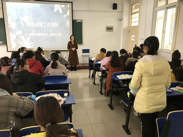 12月13日,大位会计学院会计教研室邀请北京易分网络科技公司财务经理刘倩,走进基础会计课程的课堂,给学生作了一场题为“财务日常工作浅析”的专业讲座。