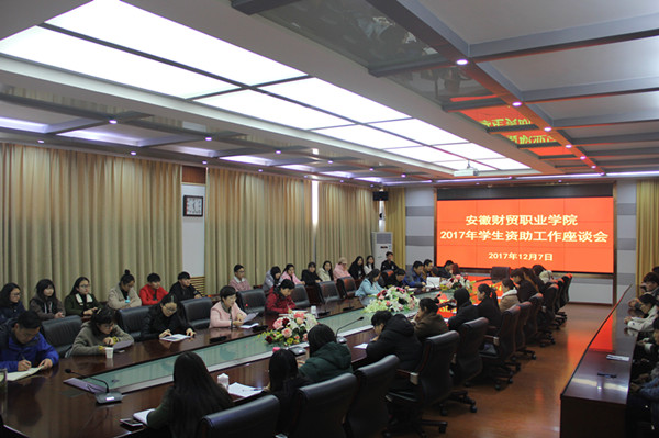 12月7日中午,学校在行政楼第四会议室召开2017年度学生资助工作座谈会,学生处长薛卫敏、团委副书记兼学生资助中心主任王学峰、各学院党总支书记、学生秘书以及42名受资助的学生代表参加座谈会。会议由学生处副处长胡宏萱主持。