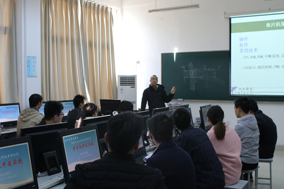 11月23日,云桂信息学院应用电子教研室邀请北京创先泰克科技有限公司总经理徐得峰走进课堂,以电子产品系统中的重要组成部分——单片机系统的开发实践为主题,给电子1601班做了一场精彩的报告。