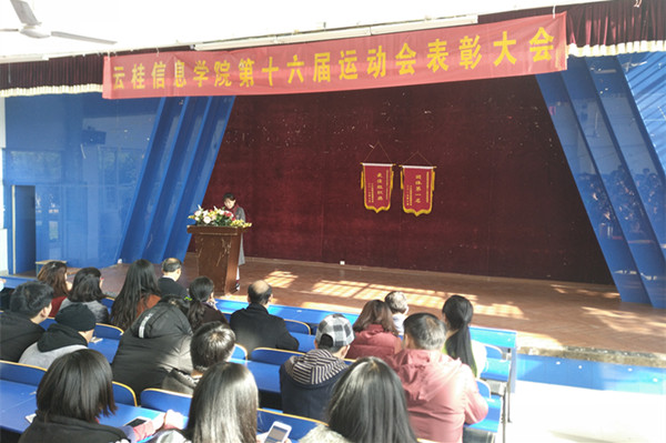 此次运动会表彰大会,旨在鼓舞士气,弘扬正气,总结经验,再接再厉。进一步增强了团队凝聚力,激发了同学们积极参加各项活动的热情。 “云桂信息,自强不息,同舟共济,再创佳绩!”