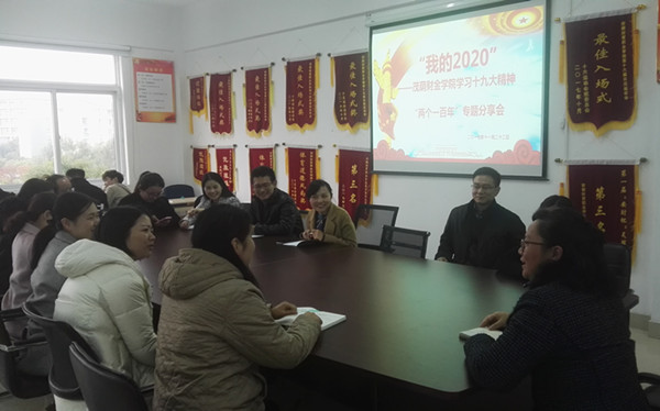 在11月8日全体教师赴合肥市委党校听取“党的十九大精神宣讲团”成员、理论教研室主任凌德政教授专题辅导报告的基础上,11月22日下午,茂荫财金学院老师们联系学院发展建设实际,结合本职教学科研工作,以“我的2020”为题,展望建党100周年全面建成小康社会之时,各自的成长愿景和学院发展,茂荫财金学院党总支书记徐明主持学习分享会。