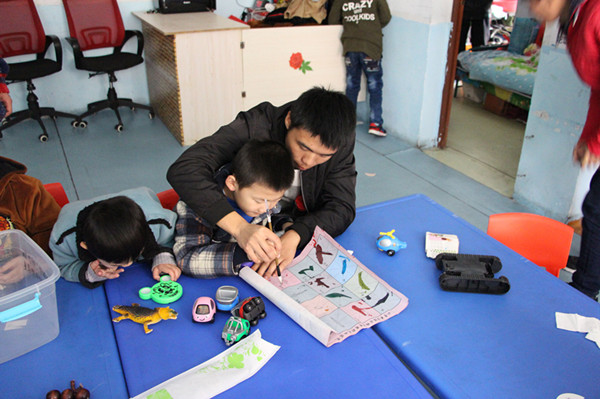 宾虹艺术学院志愿者为自闭症儿童精心准备了许多小游戏,亲手为孩子们做饭,并耐心的教孩子们画画、写字。康复中心的老师告诉志愿者,这些儿童最大的特征是“他们安静地沉浸在自己的世界里,每个人都是那么的与众不同。他们并不是喜欢孤独,而是缺少关爱和温暖来对抗孤独。”志愿者们用游戏引导孩子们主动学习说话,用拥抱来温暖孩子的心灵。志愿者蔡悦表示,“最让我们头疼的是如何与孩子们沟通,因为这些孩子都自顾自地做自己的事情,即使是和班上交流能力不错的孩子交流,也需要花很大的劲才能够听懂他的每一句话,很耐心地重复才能够让他听懂我的话,但是看到他们对我们投以微笑和信任时,我们觉得所有的付出都是值得的。”