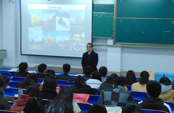 11月19日晚,美国威斯康辛医学院博士后、安徽医科大学副教授计永胜应朱熹文旅学院英语协会邀请,作了“壹技之长 浅谈英语学习”主题讲座,对英语感兴趣的学生到场聆听。