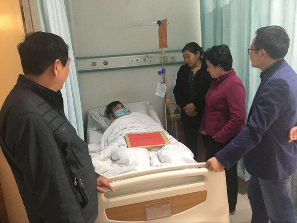 11月14日上午,学生处处长薛卫敏、大位会计学院党总支副书记张少兵、辅导员王繁一行3人代表学校前往苏州大学附属第一医院广慈分院看望不幸患上“极重型再生障碍性贫血”的重病学生唐成琪。