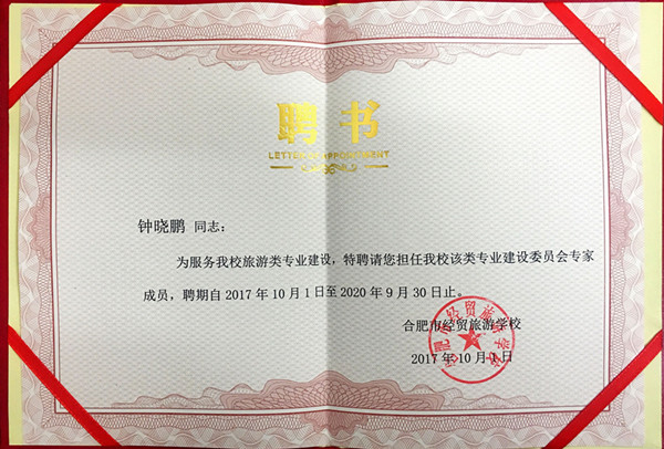 近日,朱熹文旅学院副院长钟晓鹏应邀参加了合肥市经贸旅游学校旅游类专业建设委员会成立大会暨专家座谈会。