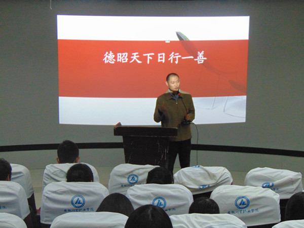 仪式结束后,刘高威作题为《德昭天下 日行一善》“211工程之公益传播官”讲座。讲座报告中,他为我们介绍了新安公益学院图标释义:即图标颜色以黄、蓝为主,意为做公益奉献要有阳光向上、青春活泼的无私精神。上面的图形字母:“X”是“新安”的首字母,“Y”是“益”的字母。整体图形呈中心对称图形,中心对称图形既和谐又完美无缺,该图标以中心对称图形为设计要素,突出表达公益活动既要人人奉献爱心,同时又要做到尽善尽美。他以一个资深媒体记者的角度,讲述了自己在公益事业报道中的武美等公益者领头者的感人善举及经典事迹案例:关爱五保老人、照顾自闭症儿童、收留流浪动物等,论证了“愿善良的人,被这个世界温柔以待”的道理。