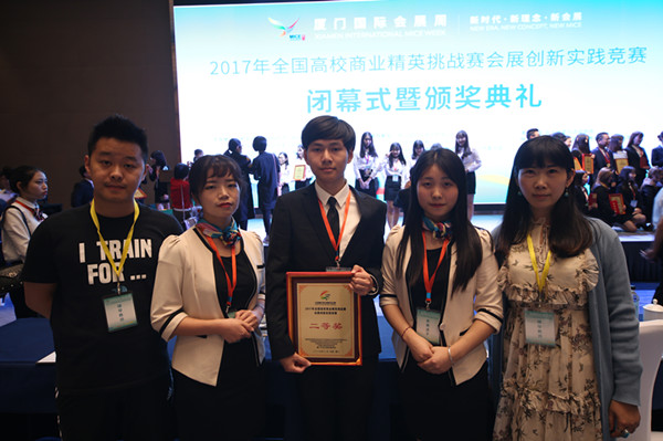 在刚刚结束的2017年全国高校商业精英挑战赛会展创新实践竞赛全国总决赛中,宾虹艺术学院广告设计专业丁蓉、胡杨两位老师带队,由广告专业杨旭旭、钱鹏娟、旅游专业余炜凡组成的代表队,荣获二等奖佳绩。
