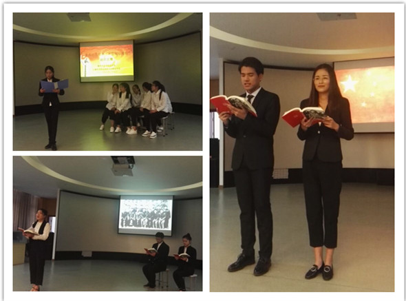在9月23日茂荫财金学院学生党员开展的“重温红色经典 不忘初心前行”活动基础上,两个学院党总支共选送了7组诵读节目。同学们选取《习近平的七年知青岁月》《习近平总书记系列重要讲话读本》中的章节为文本,采取单人诵读、多人合诵等形式,分享了《近平在困境中实现了精神升华》 《近平敢说敢做敢担当》 《群众需要什么,近平就干什么》等经典篇章。特别是徽商职业学院的同学们在老师指导下排演的两个节目《党小组学习会——习近平总书记治国理政思想的历史起点》和情景剧《干在实处 走在前列》,编排形式新颖,选手们真情演绎,震撼全场,赢得师生经久不息的长时间掌声。茂荫财金学院党总支书记徐明做了现场点评,高度评价了两院党建创新交流方式,希望在双方在基层党组织标准化建设、专业建设、技能大赛等方面加强合作交流。最终,徽商职业学院选送的《习近平总书记治国理政思想的历史起点》、茂荫财金学院选送的《敢说敢做敢担当》获得一等奖。