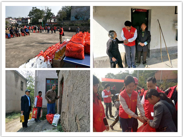 此次活动在舒城市管岭县善心村的小操场上举行,老人们在此聚集,活动现场热闹非凡。志愿者们分工明确,有的在精心准备接下来的演出,有的在台下亲切地与老人们聊天。随后,志愿者们为老人们献上了精心准备的节目:合唱红歌、小品、朗诵等等,虽然演出设备略微简陋,但是表演者的热情和真诚感染着每一位老人,台下不时传来阵阵掌声与喝彩。表演结束后,志愿者们依次分发为老人们准备的米、油、面、盐、毛毯等生活用品。拿到礼品后的老人感激地握住志愿者们的手,不停地说:“谢谢,谢谢,有你们真好。”最后,志愿者们一一护送老人们回家,他们忙碌的身影穿梭在往返的路上,成为乡村道路上一道美丽的风景线。