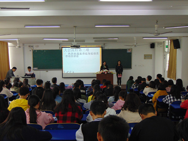 10月18日中午,朱熹文旅学院举行了第16届校运会动员大会,朱熹文旅学院党总支副书记宋凌云、团总支书记汪双、教练员刘成、团学干部及全体运动员参加了会议。