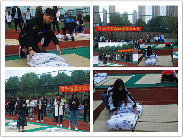 10月20日中午,雪岩贸易学院在学校运动场上举行了一场精彩的叠军被大赛,提高新生内务整理水平,培养学生良好的生活习惯。