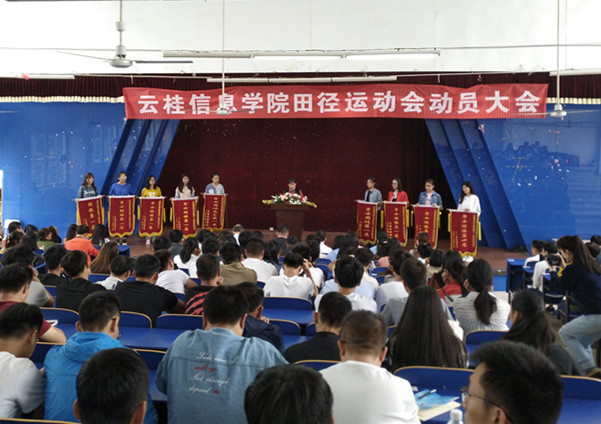 会上,倪晶晶向同学们作了简明而精彩的动员报告。她回顾了云桂信息学院历年在校运动会上取得的辉煌成绩,自2009年以来蝉联团体总分第一和最佳组织奖,她要求参会同学要继续发扬云桂信息学院团结、务实、拼搏、奋斗的云桂精神,本着“友谊第一、比赛第二”原则,不仅赛出成绩更要赛出风格。