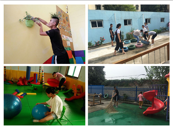 7月3日,行知管理学院“天天向上”公益小分队以“关爱自闭症儿童,奉献社会”为口号,9位同学在团总支书记左艳琼的带领下来到了合肥市天天向上特殊教育机构,公益小分队给“天天向上”的老师和孩子们送去了价值500元的教学用品。此次活动为期一周,志愿者们每天配合“天天向上”的老师完成当天的教学任务,同时担任校工,做好清洁教具、操场除草等多项工作。
