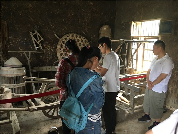 在小井庄纪念馆,同学们在山南镇政府工作人员的讲解中,全面学习了小井庄近40年的前世今生。纪念馆不大,却用翔实的图片及档案文件展示了1978年9月开始,小井庄人敢为人先扛起来了农村经济改革的第一面旗帜。同学们通过聆听讲解、参观图片文字实物,真实体会了改革开放近40年中国的巨大变化。在纪念馆背后,同学们走进了当年时任安徽第一书记万里在小井庄座谈的农家旧址,两间茅草屋里面摆放着当年使用的桌椅、茶罐、茶碗,以及水车、犁等农具,地面是土泥坑洼不平,物品及其简陋,对同学们的震撼不小,他们表示,基本没有在现实生活中见过这样的房屋,很难想象40年前的人们过得是什么样的生活,对比今天的幸福生活,更加能够体会改革开放带给祖国和人民的巨大变化。